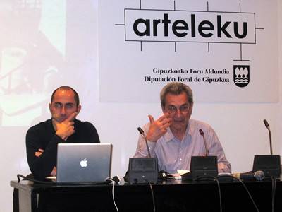 Carles Guerra eta Toni Negri hitzaldiaren une batean